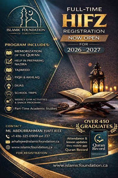 A. There are multiple ways to keep informed of upcoming events. Emails will be sent out periodically with any important notices or reminders. Notices and reminders will also be posted in the Full-Time Hifz section on the Islamic Foundation website, insha-Allah (www.islamicfoundation.ca).